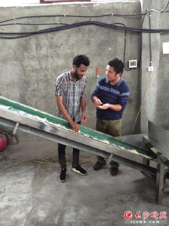 “这几天一直在忙着调试机器,没来得及回复你。”昨日,远在埃塞俄比亚的曹军汉在微信中回复记者。从他发过来的视频中,记者看到,他正在厂房里指导当地员工生产一种膨化食品。