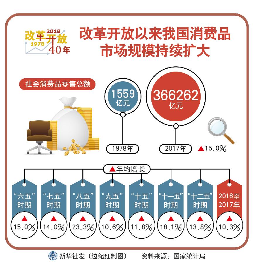 图表:改革开放以来我国消费品市场规模持续扩大 新华社发 边纪红 制图