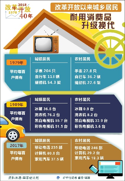 图表:改革开放以来城乡居民耐用消费品升级换代 新华社记者 崔莹 编制