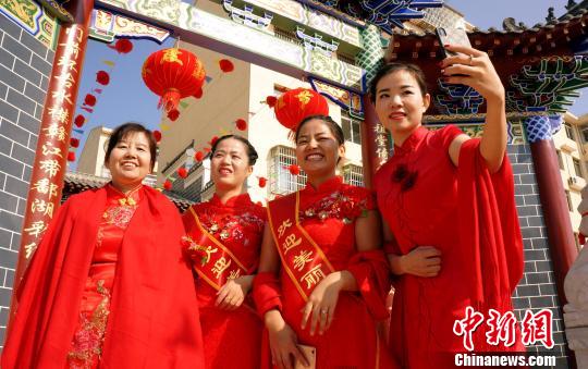 花伞、旗袍、红围巾,“外嫁女”当天把自己打扮得美美的回到娘家。 王昊阳 摄