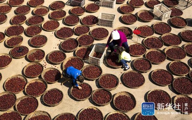 ↑10月3日,山西省临汾市襄汾县官滩村农民在晾晒红枣。新华社发(王稳锁 摄)
