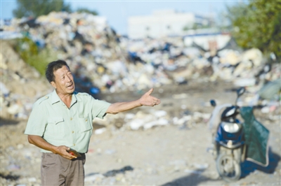 9月21日下午,北京市北五环外半截塔村附近的垃圾场上,干完活的秦建国利用等垃圾车的时间排练歌曲,为第二天上午的音乐节做准备。