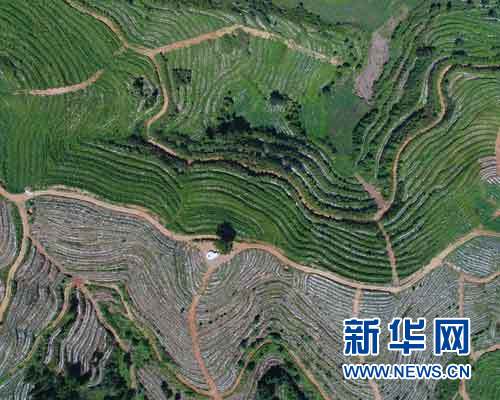 正在建设的贵州百灵紫云生态蓝莓园。(8月30日,航拍照片,新华网 卢志佳/摄)