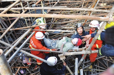 贺兰县一建筑工地坍塌,消防官兵展开救援。