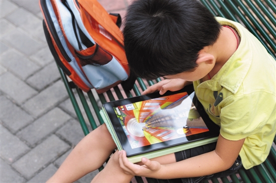 玩手机、平板成了不少孩子的主要娱乐 羊城晚报记者 王俊伟摄