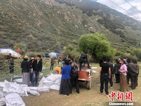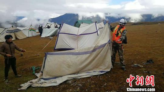 图为转移后的村民开始搭建帐篷。江达县宣传部供图