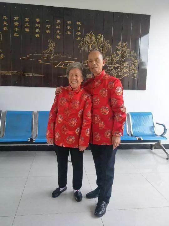 一对金婚老人幸福合照