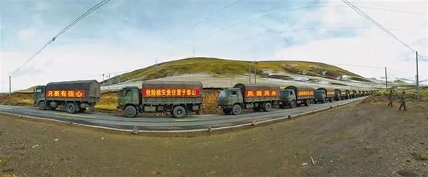 昌都军分区运送昌都市民政局调拨的救灾物资前往江达县。 中国西藏新闻网 图