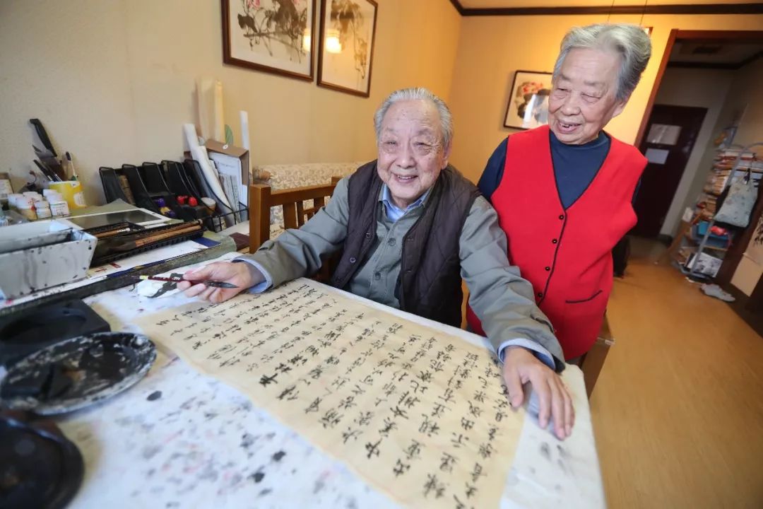 86岁的王喜兰和85岁的吕德康是燕达金色年华健康养护中心有名的“夫妻教师”。两人利用自己在国画和书法方面的特长,每周为养老院里的老人上课。