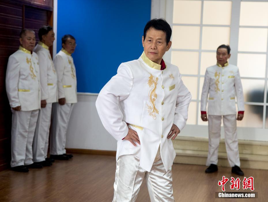 10月17日,武汉市武昌区南湖街老年大学二楼训练场,“南湖帅哥”老年男模队的队员在这里集体训练。高挑挺拔的身材,身着时尚新潮的服装,踏着节奏走起台步,再顺势摆出一个姿势亮相。“南湖帅哥”老年男模队是2012年组建的,已经发展为两个班,一个基础班一个提高班,每个班20人。这支老年男模队成员都是六十岁以上的老人。中新社记者 张畅 摄