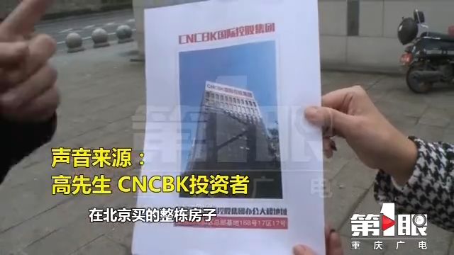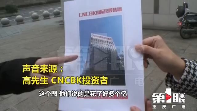大家来到恒大中渝广场1栋29楼,却被保安告知,这家CNCBK公司已经搬走了。拨打负责人张某的手机,无人接听。经过仔细核实,投资人发现了这家公司更多的疑点。照片里的这栋大楼,公司对外宣传是花了好几个亿买下的,属于公司的资产,结果公司只是租了其中的一层楼,楼顶的这个广告牌,其实是用修图软件,P上去的。