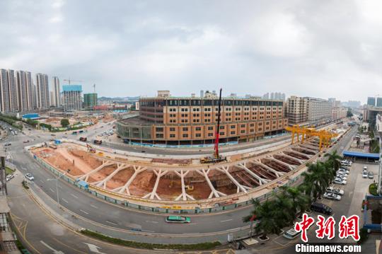 深圳地铁10号线岗头站基坑主体结构施工现场。深圳市地铁集团