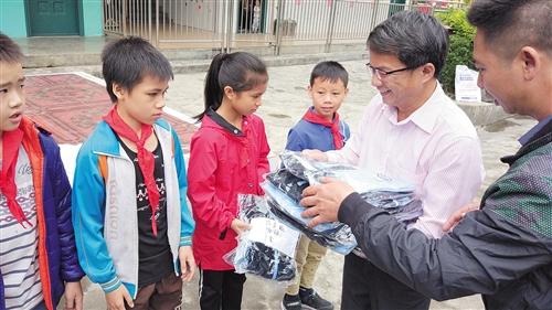 雨后的龙印村秋风瑟瑟,爱心人士一行人经过4个半小时的车程终于到达龙印村。给龙印小学的93名学生送去了崭新的秋季校服。穿上崭新的校服,学生蒙欣欣说,以前在电视上看到别的学校学生穿校服既精神又整齐,现在自己和同学也有了新校服,再也不用羡慕了。