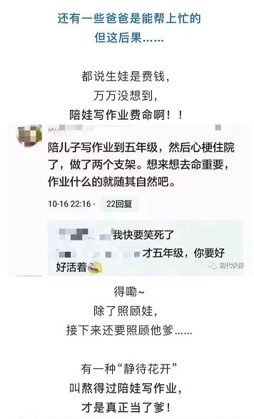 在教育孩子这个问题上,有千百次想掐死老公的冲动!平常不看作业、不送上学,不陪锻炼。拉进班级群,又从不发言,默默潜水,老师说到孩子的问题,只有我在群里抵挡回应。爸爸,呵呵,不存在的!