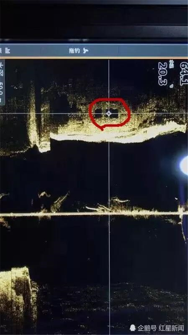 此外,相关部门通过声纳设备,已初步确定公交车位置。救援团队认为下图中的长方形为出事的22路公交车。