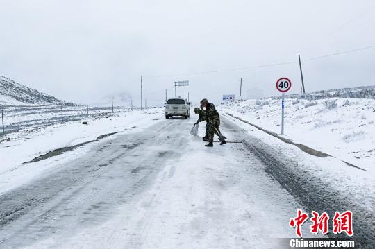 图为武警某部交通三支队养护十七中队官兵清除积雪。武警某部交通三支队 供图