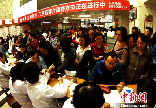 膏方节现场,江西省中医院数十名老中医为前来排队问诊的市民提供健康指导和开方服务。 王昊阳 摄