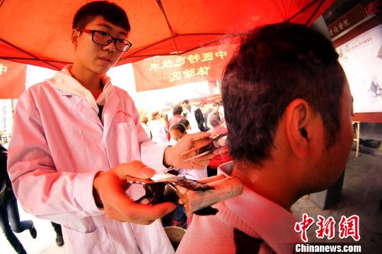 膏方节现场,一位市民在体验中医艾灸。 王昊阳 摄