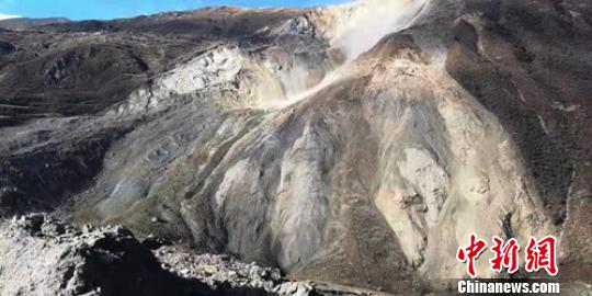白格堰塞湖附近山体还在垮塌。 钟欣 摄