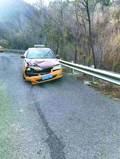 “山体滑坡!”孙女士立刻反应过来。夫妇二人再仔细查看,发现车身周围有很多碎石块,车辆前后不同程度受损。最严重的是被巨石砸中的前机器盖,已经无法打开,还能听到液体泄漏的嘀嗒声。“车打不着火,我们猜测是发动机被砸坏了,水箱可能也漏了。”让夫妻俩感到庆幸的是,如果再错后半米,巨石就会砸中驾驶室,后果不堪设想。为防止滑坡引发次生灾害,孙女士和丈夫合力将车往后推了10米远。车辆经过处,留下了一道长长的液体泄漏痕迹。