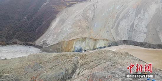 截至11月13日16时,堰塞湖上游3公里处坝上水位2953.53米,较最高水位下降2.87米。 文/刘忠俊 钟欣 摄