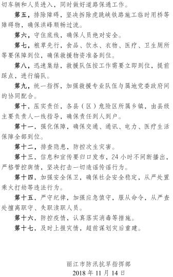 丽江市防汛抗旱指挥部发布的紧急命令。丽江市委宣传部供图 摄
