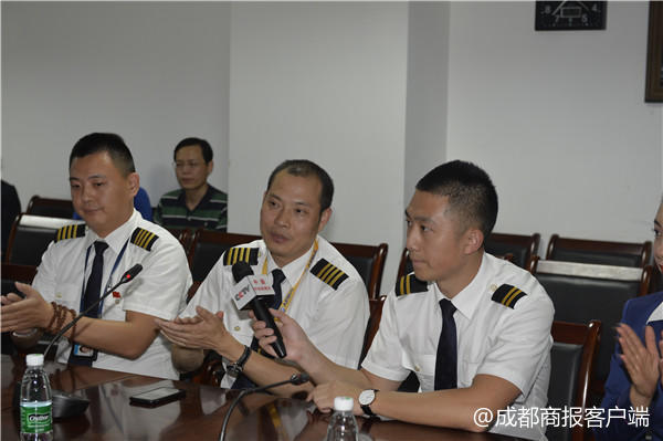 ↑川航“英雄机组”,中间为机长刘传健(资料图)