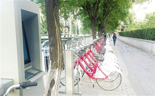 北京西城区一处有桩公共自行车站点。 曹红艳摄
