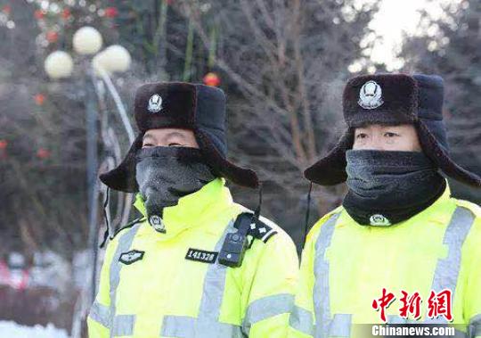 交警在寒风中执勤。(图片由呼中区委宣传部提供)