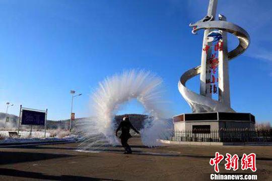 游客体验“泼水成冰”。(图片由呼中区委宣传部提供)