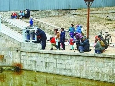 元大都公园里摄影爱好者竞相拍摄丑鸭