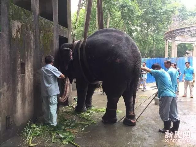 2017年,借助吊车,园方扶起了版纳。徐鸣慧 摄
