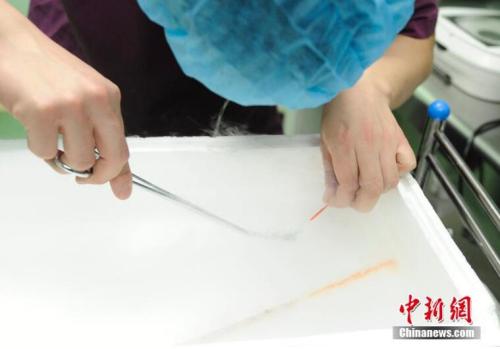 资料图:医生将胚胎放入冷冻管中。图文无关。张瑶 摄