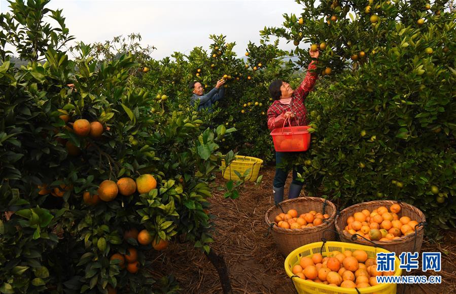 11月26日,连江县祠台村村民在采摘脐橙。 近年来,福建省连江县祠台村党支部通过加强队伍建设、廉政建设和组织建设,充分发挥基层党组织的战斗堡垒作用,引导村民发展果、茶等特色农业,加快实现脱贫致富。 新华社记者张国俊摄