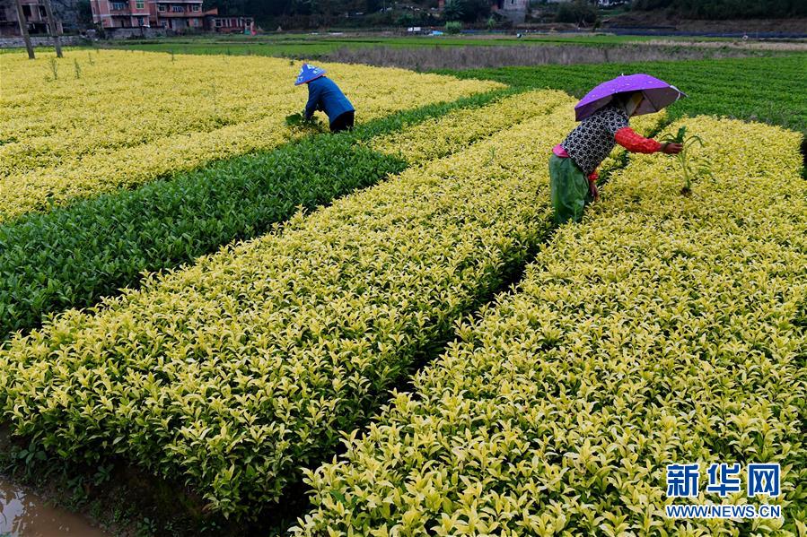 11月26日,连江县祠台村村民在管理茶苗。 近年来,福建省连江县祠台村党支部通过加强队伍建设、廉政建设和组织建设,充分发挥基层党组织的战斗堡垒作用,引导村民发展果、茶等特色农业,加快实现脱贫致富。 新华社记者张国俊摄