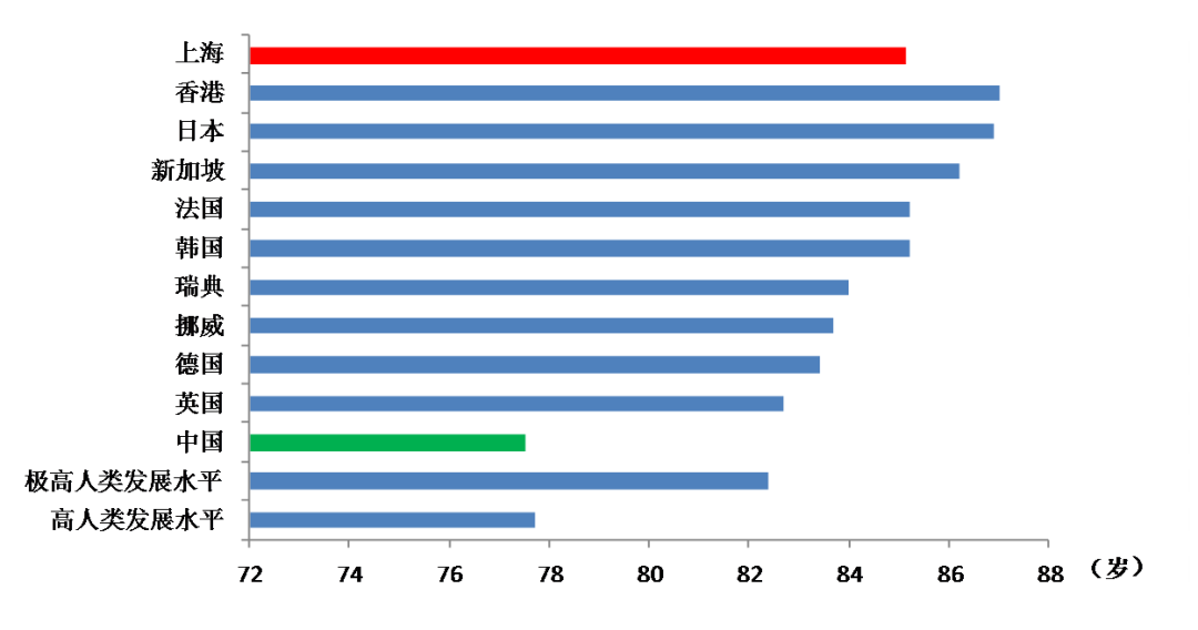 近年来,上海女性和男性的预期寿命不断提高。改革开放40年来,上海女性的预期寿命从1978年的74.8岁上升到2017年的85.9岁,上升了11.1岁,高出全国平均数6岁多。这一指标在各省市、自治区、直辖市中位居首位(除香港和澳门)。