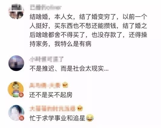 △为何选择晚结婚?有网友认为,宁可晚婚,也一定要遇上对的人。同样也有网友认为,生活的压力过大,导致婚姻被推迟