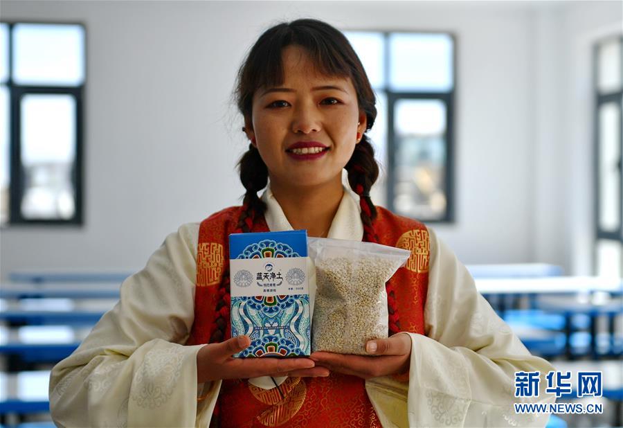 一名员工在青稞精深加工产业园区产品展示厅内展示青稞产品(11月28日摄)。 11月28日,由德琴3900庄园有限公司建设的青稞精深加工产业园区一期工程在西藏日喀则市桑珠孜区江当乡竣工试运行。青稞精深加工生产线投产,可提升当地的青稞深加工能力,促进农民就业增收。 新华社记者 张汝锋 摄