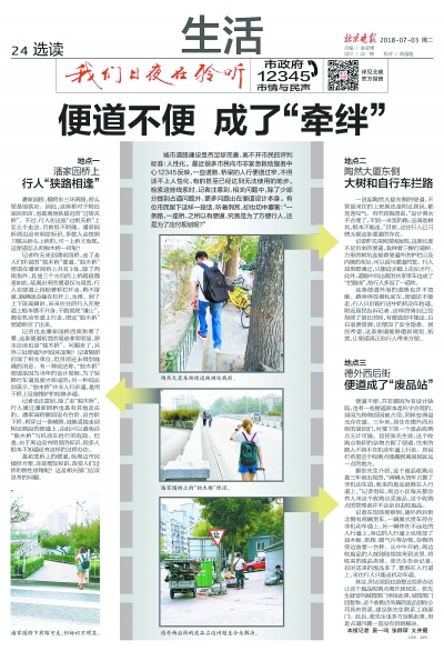 从今年7月3日起,本栏目报道了大量行人便道问题,其中第一篇为《便道不便 成了“牵绊”》。文中提及潘家园桥便道、陶然大厦东侧便道及德外西后街便道,文章梳理便道难走的原因,其中包括本身设计过窄,被车辆杂物占用等等。