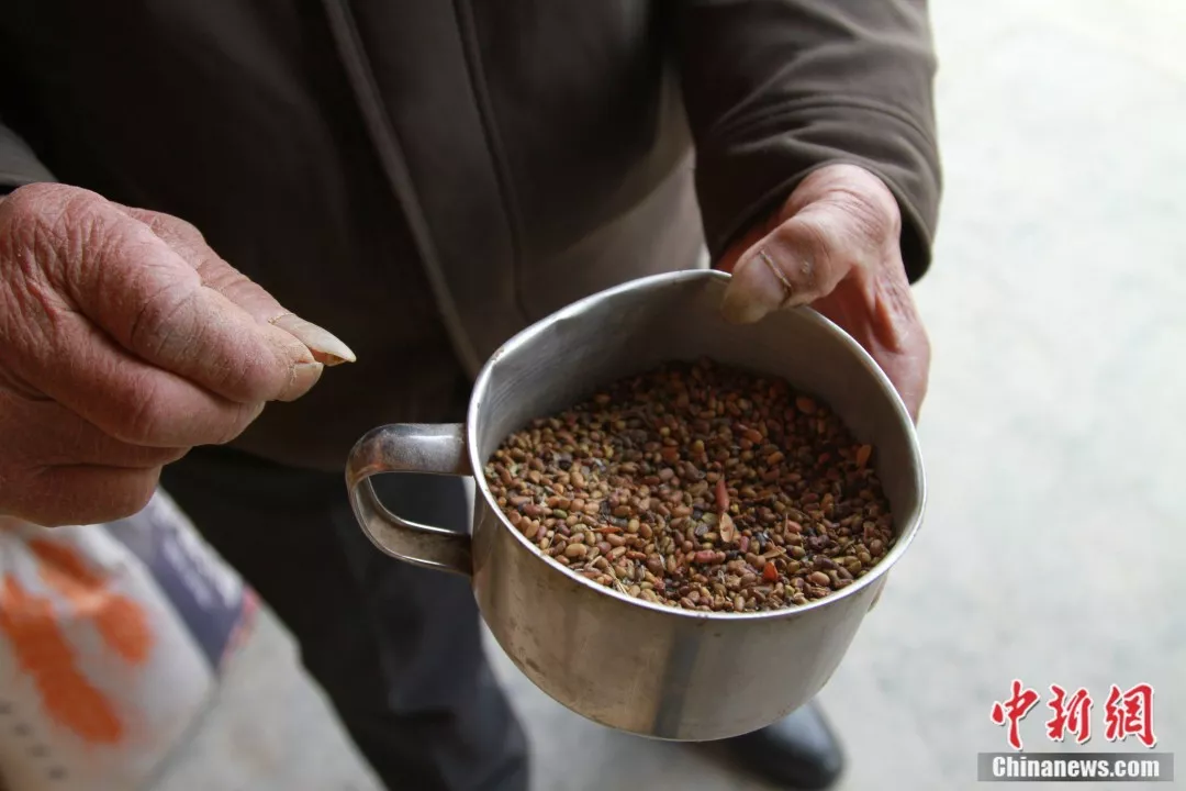 老人将种子从荚中取出 李培源 摄