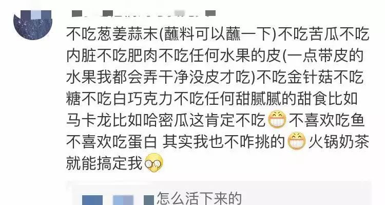 我曾以为,我不吃葱,不吃蒜,不吃韭菜,不吃辣,已经算很挑食了,然而,看过网友们的留言,我才知道,我是井底之蛙。