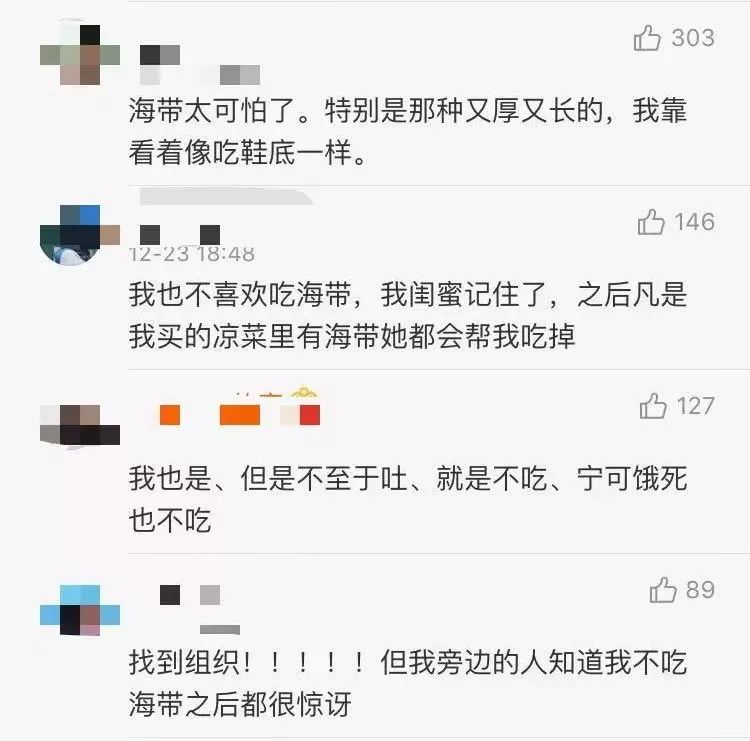 在不吃食物系列里面,留言点赞排第一位的,居然是海带!香菜,要加油了哦!