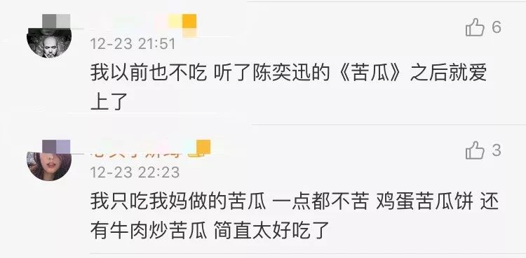 然而,有人听了陈奕迅的《苦瓜》之后,就爱上了吃苦瓜。所以,下次遇到不吃苦瓜的,就可以拿出这首《苦瓜》了!