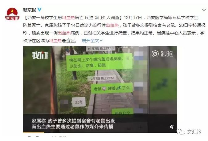近期新闻报道,西安医学高等专科学校1名学生因患出血热死亡,受到很多人关注。