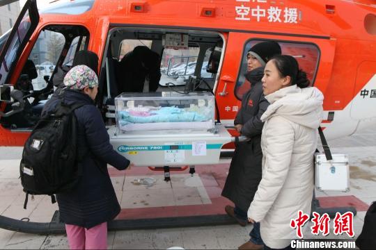 随即,甘肃省妇幼保健院决定由甘肃省新生儿重症救护中心的医护人员搭乘上海金汇通航西北区域甘肃分公司的空中救援专业直升机赴临夏州转运患儿。1月2日下午3时30分,转运直升机从解放军联勤保障部队940医院停机坪起飞。下午3时53分,飞机抵达临夏市中心广场,医护人员快速对患儿进行了核对、处理后,再次起飞返航。
