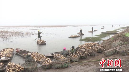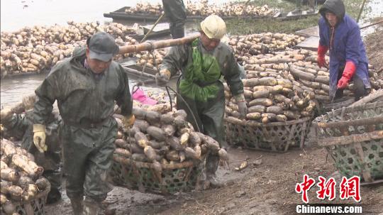 中新网益阳1月10日电(通讯员 段建 胡建根)日进六百元,年入十万元,很难想象这是农村普通村民能得到的收入,而在湖南益阳市南县中鱼口镇菱角湖村却实实在在的发生着。如今,正是莲藕的产销旺季,藕、虾、鱼生态种养的2300亩湖面让当地村民鼓足钱袋子。