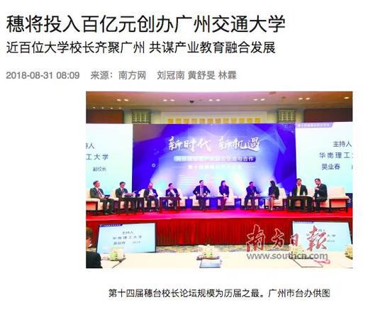 2018年8月30日,第十四届穗台校长论坛在广州举行,记者从会上获悉:广州将投入百亿元创办广州交通大学。