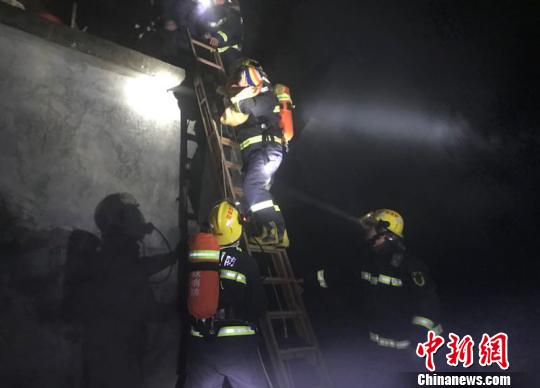 中新网桂林1月21日电(郭敏屹)1月21日6时16分,广西桂林市恭城县莲花镇老圩村一民房发生火灾,当地消防指战员紧急前往现场,成功救出4名被困者。