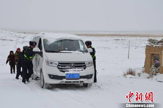 阿里边境管理支队塔尔钦边境派出所民警救助被困车辆。 朗杰赤来 摄