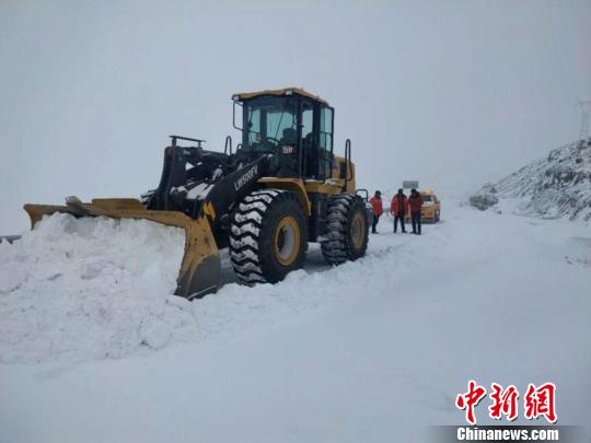 西藏阿里迎来大雪天气,阿里地区公路养护段工作人员对道路进行抢通。 阿里地区公路养护段札达指挥中心巴札一工区供图 摄